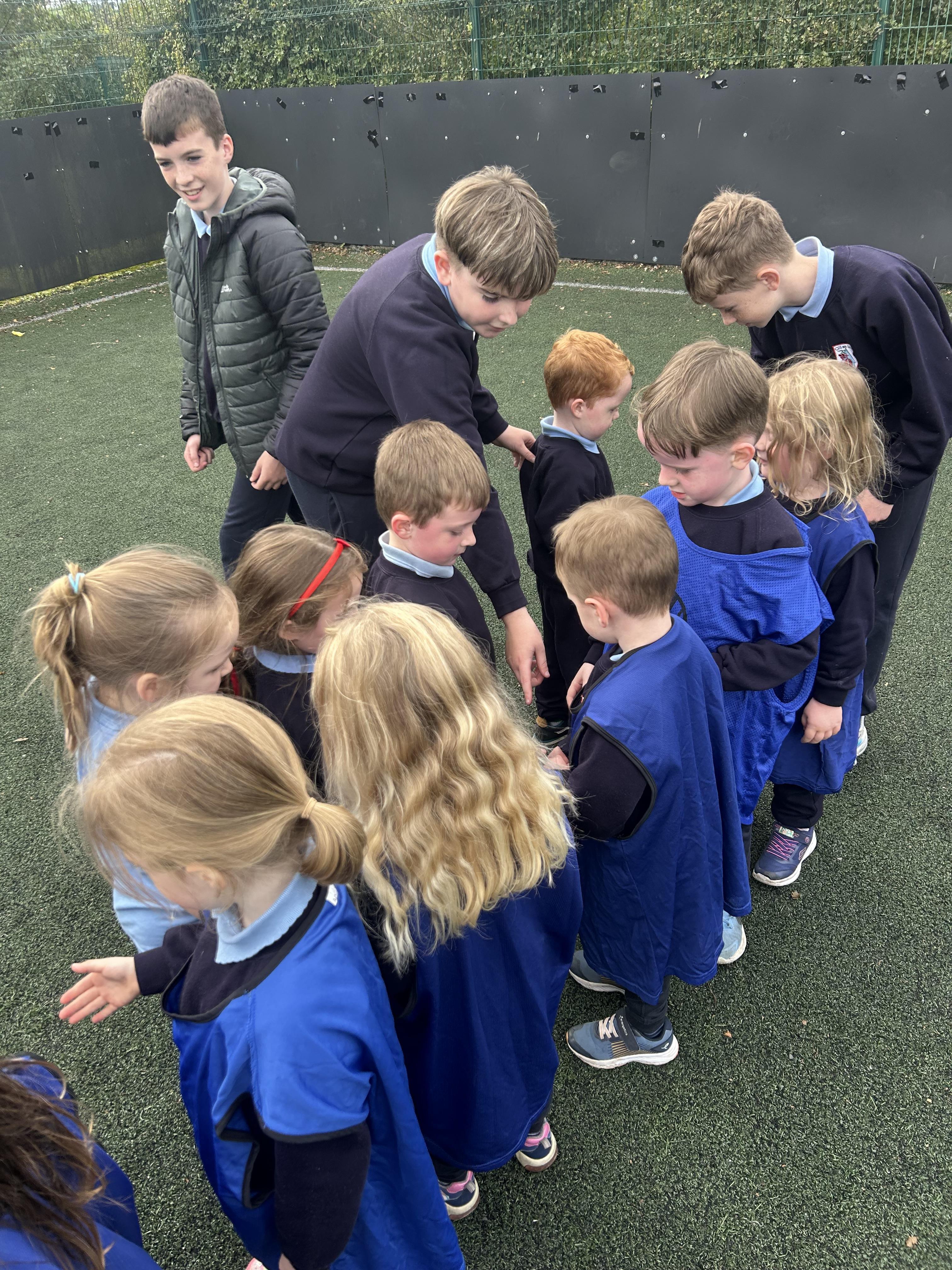 Juniors have been taking part in Gaelic Football every Thursday! Coach Matthew from Limerick GAA has been coming to visit our school. We have learned lots of new skills and have had lots of fun so far😀