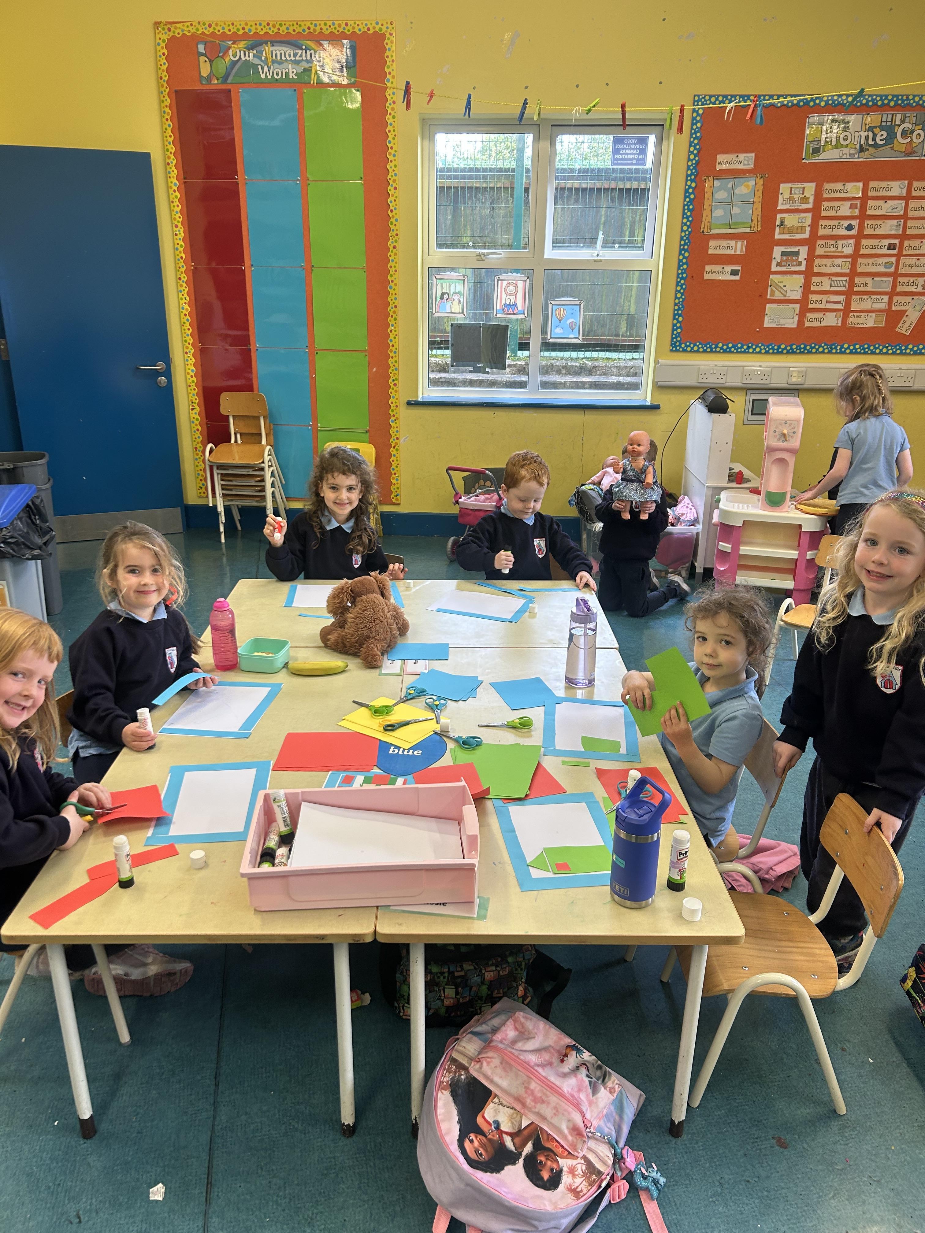 Juniors have done lots of work on our 2-D shapes over the past few weeks. We have had lots of fun making different shapes in class and playing shape games with our classmates. We will be taking part in a Shape Hunt as part of Maths week also!