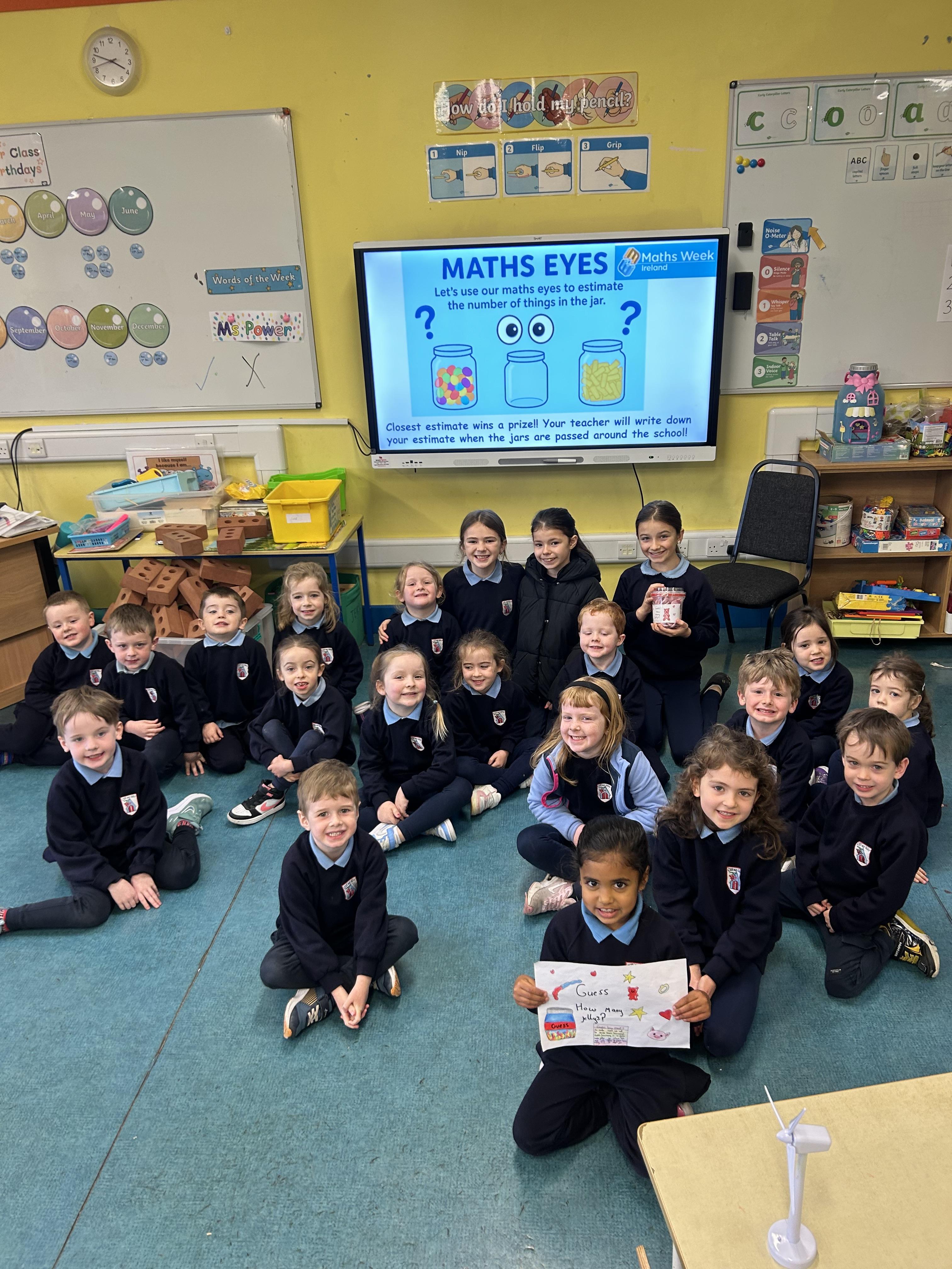 Juniors had to guess/ estimate how many percy pigs were in a jar! They also used their maths eyes to play some maths board games during our maths time!