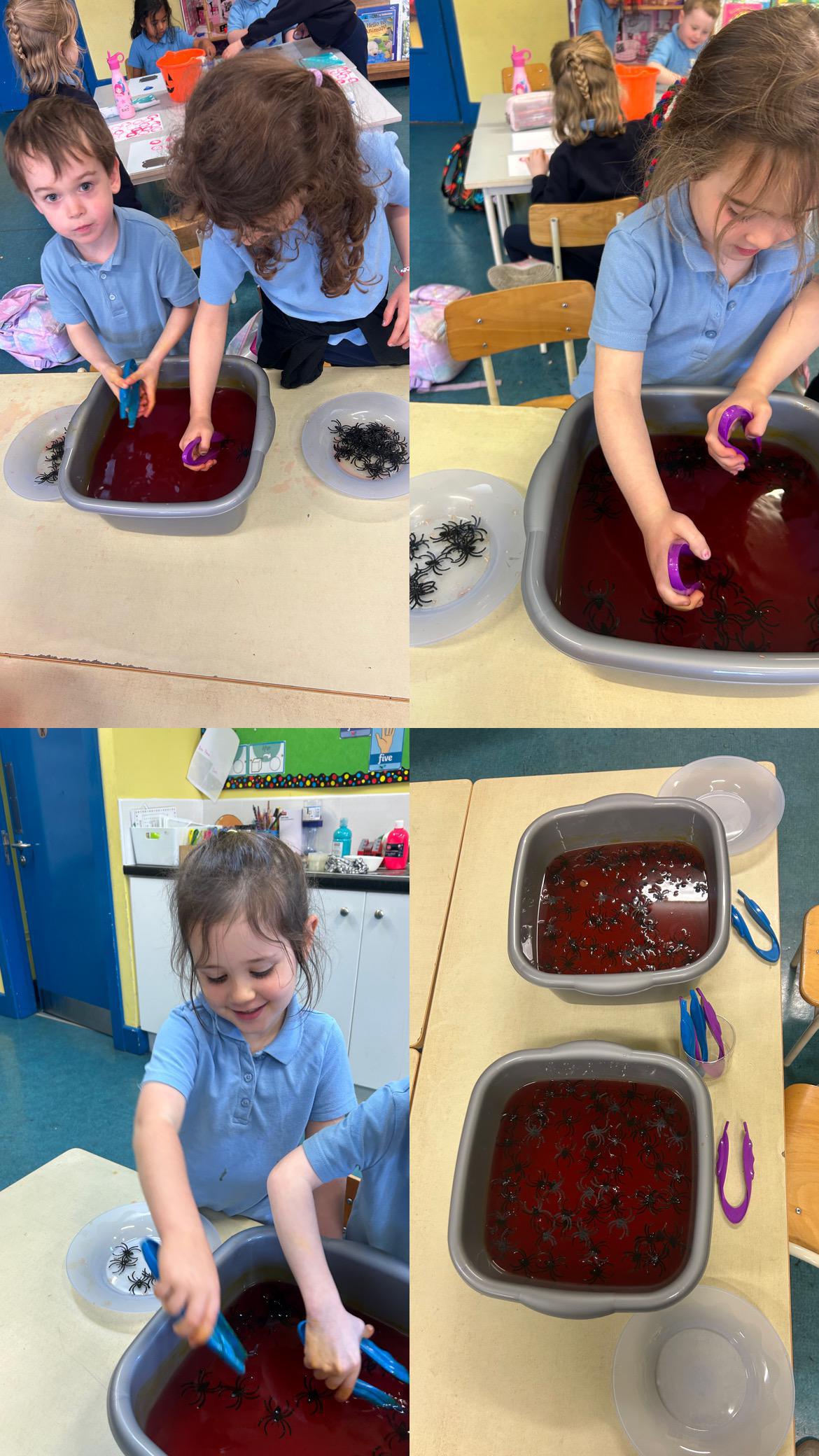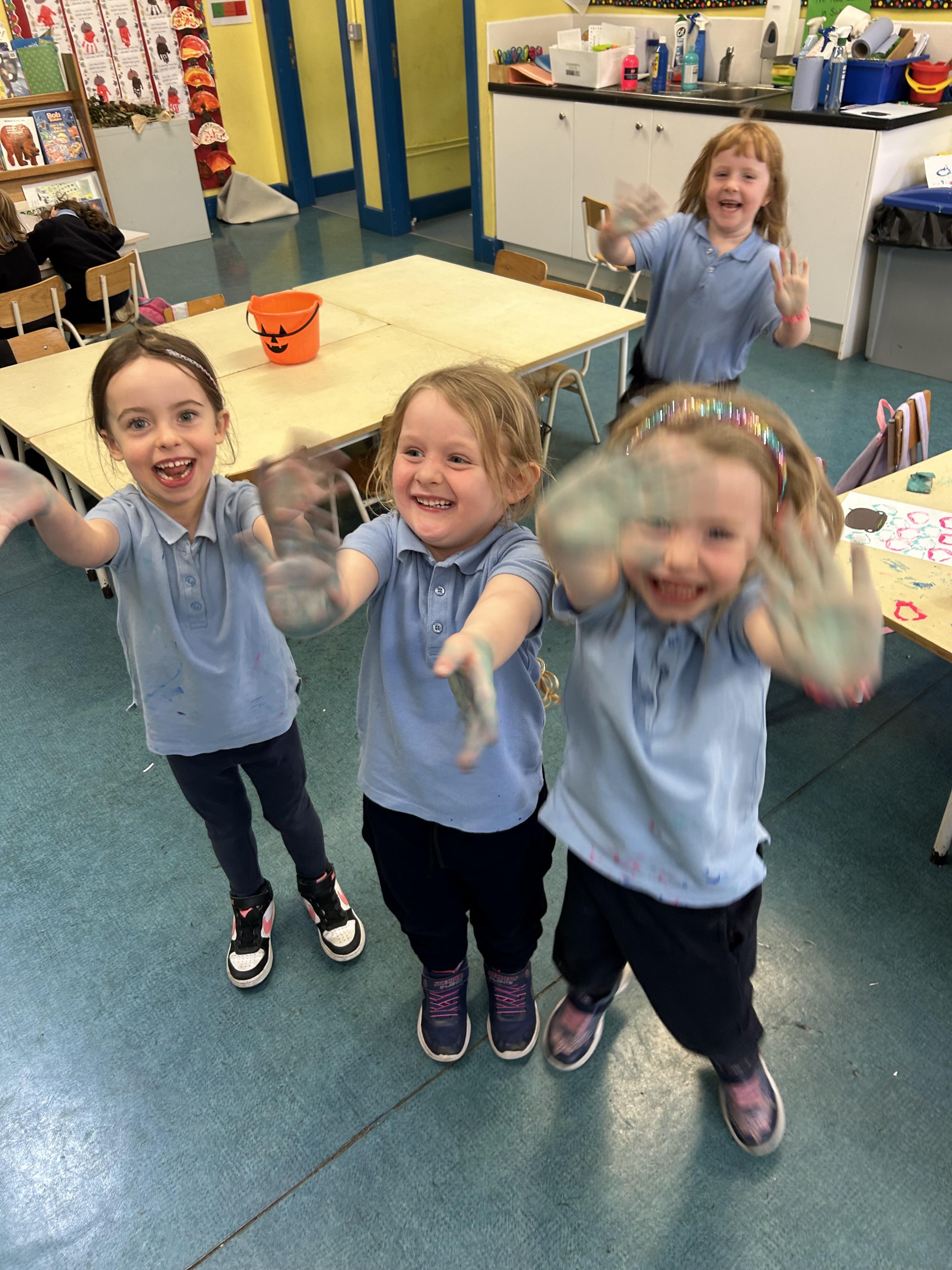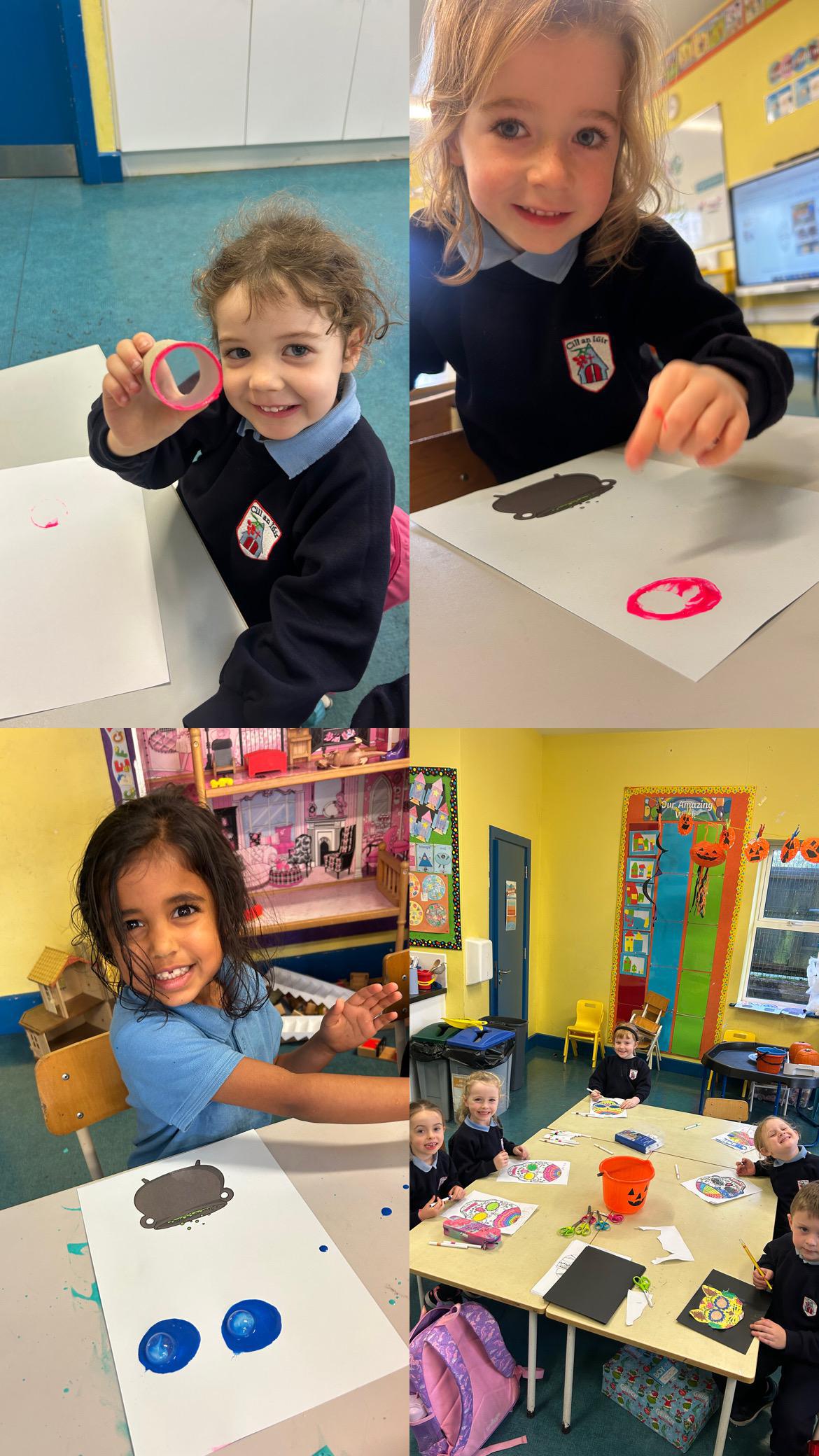 We have lots of fun this week during Aistear time! We turned our classroom into a messy zone! The boys and girls were carving pumpkins, finding spiders in creepy water along with making potions with some paint! We even created some spooky masks during playtime.