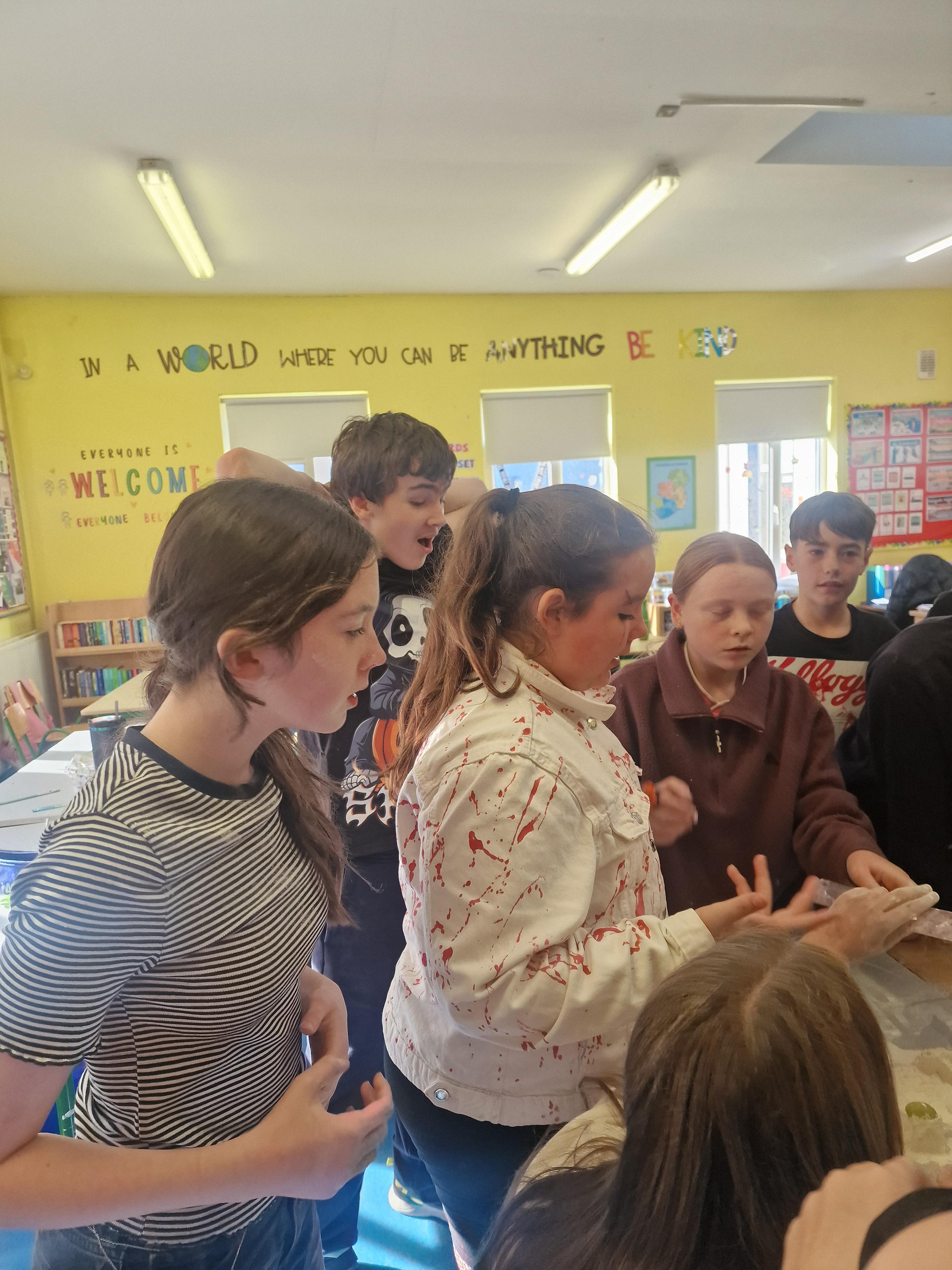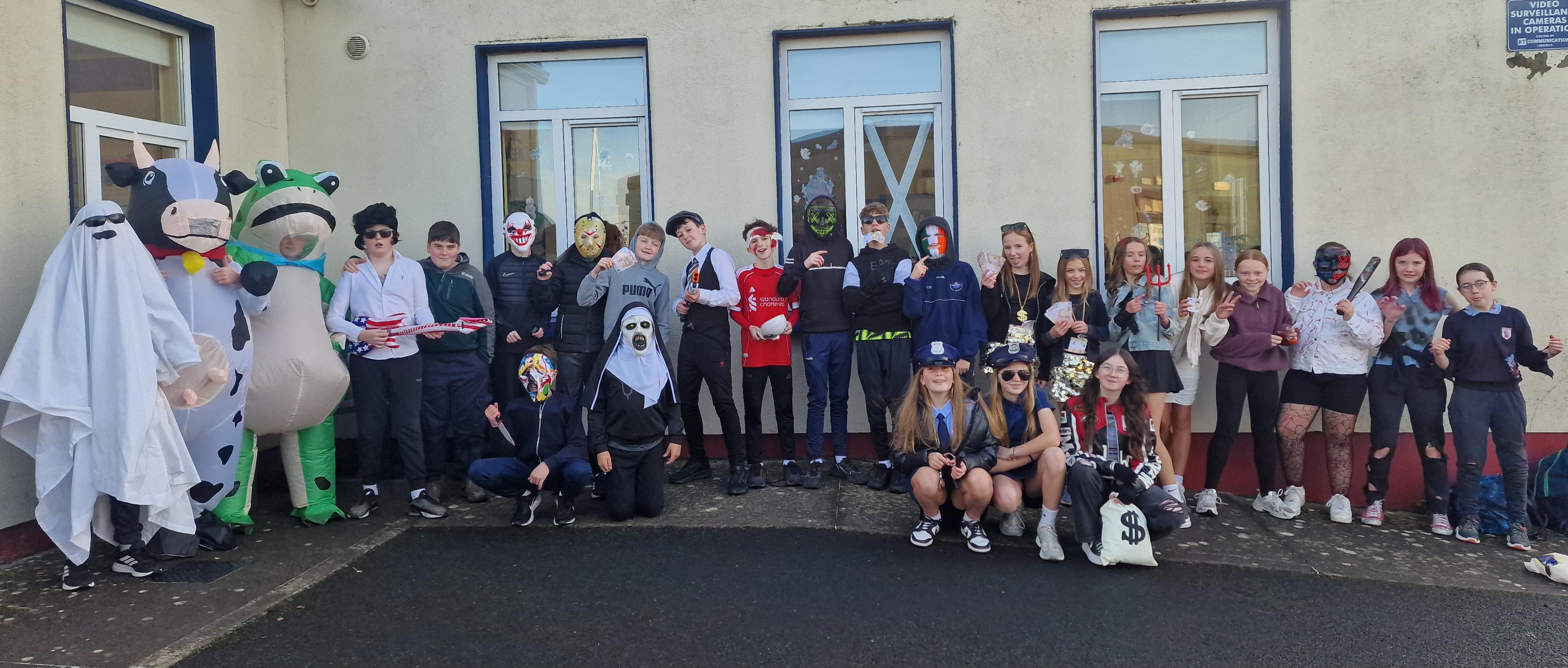 6th class looked amazing in their costumes today. After finishing off some Halloween tests they played some traditional games and went outside for some fresh air. Such a fun day.